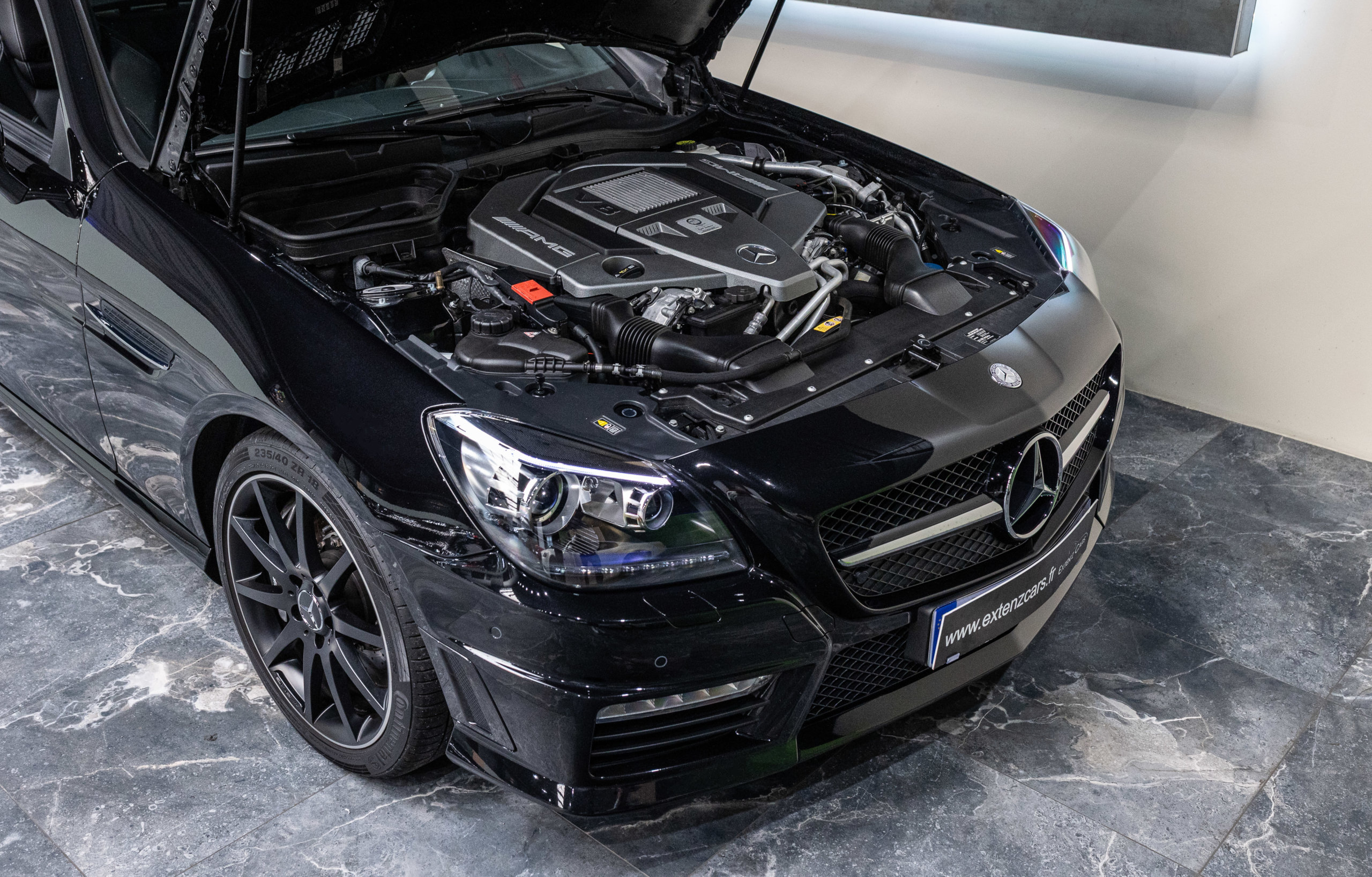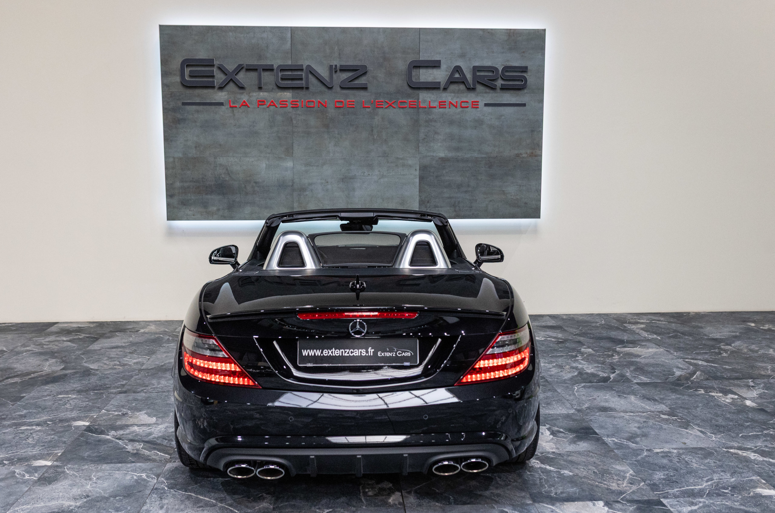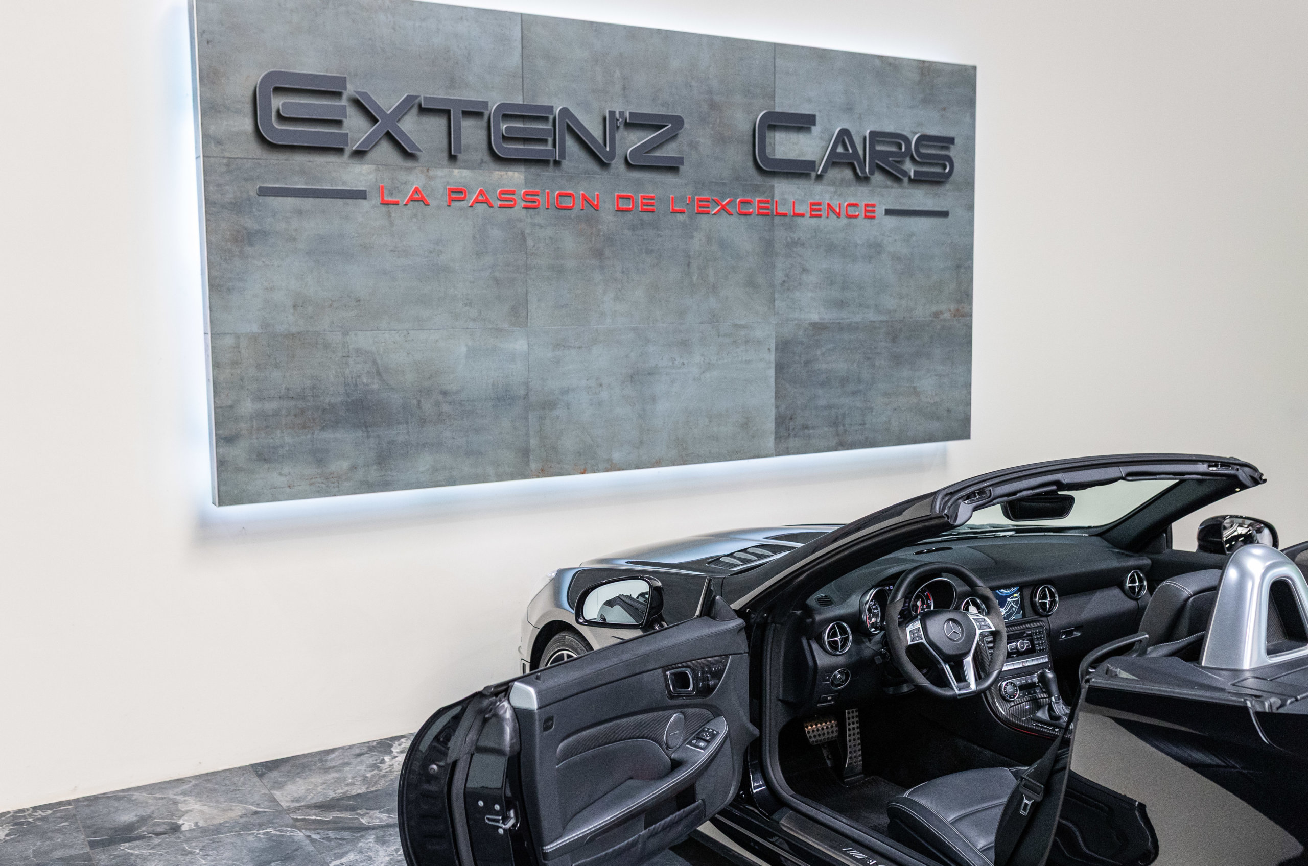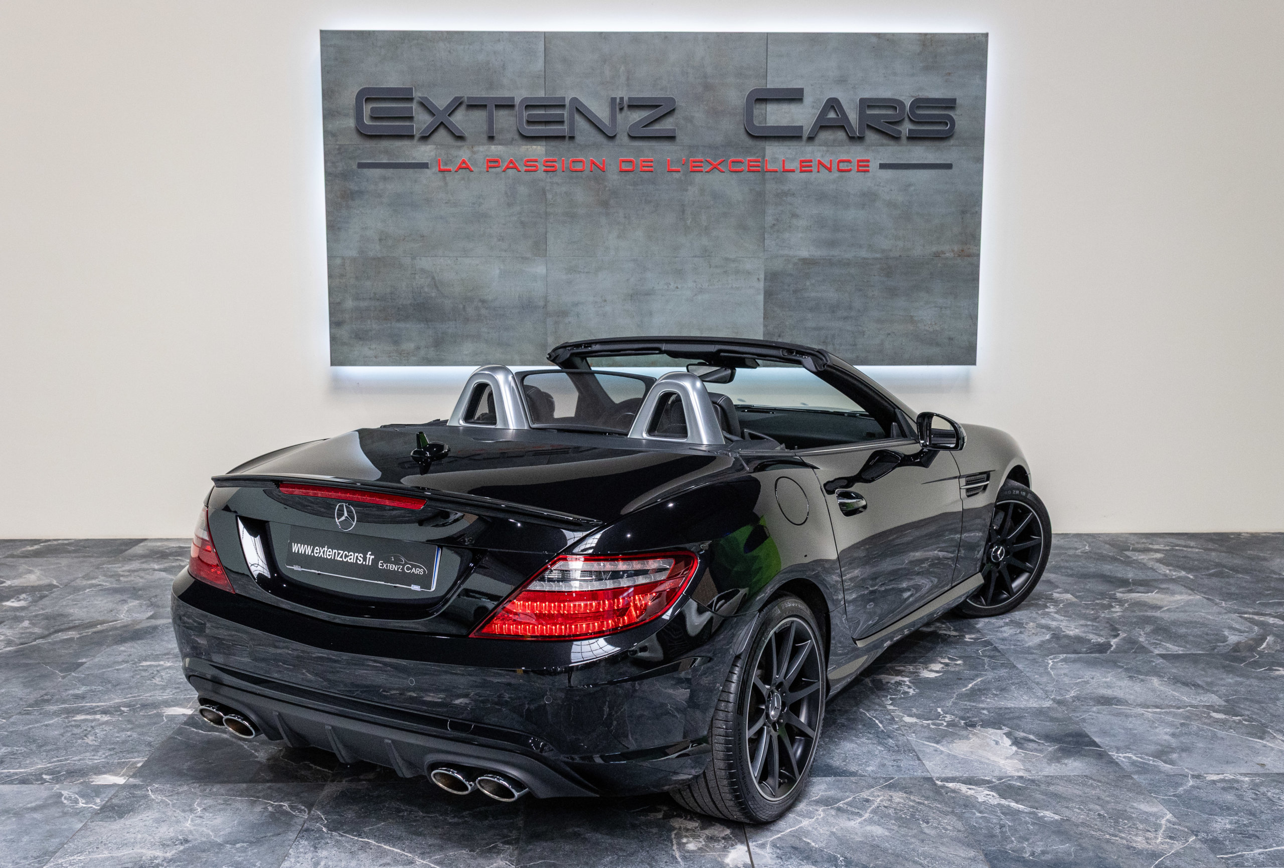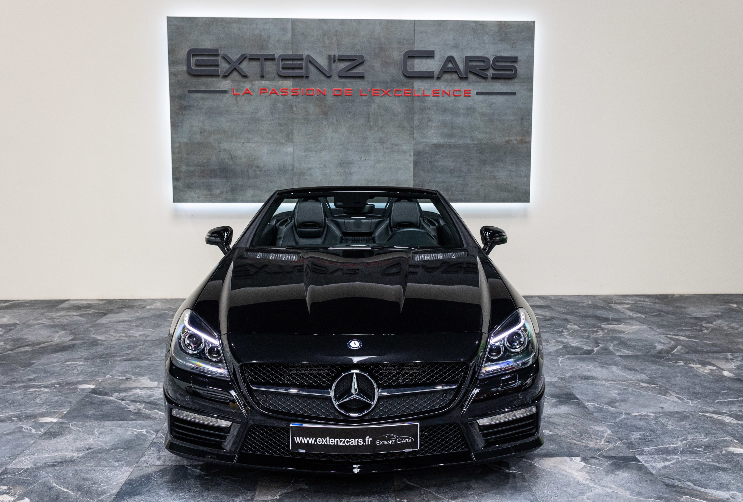 EXTEN’Z CARS vous propose cette magnifique et rare Mercedes-Benz SLK 55 AMG Roadster (R172) avec son fantastique V8 atmosphérique de 5,5 litres en voie de disparition et associé d’une sonorité exceptionnelle ainsi que de sa boîte de vitesses Automatique 7G-Tronic Speedshift Plus développant 420 CV (31cv), mise en circulation le 30/04/2012, de couleur Noir Obsidienne Métallisée. Une gueule, un moteur et un châssis, d’une polyvalence rare, ce roadster SLK 55 AMG R172 fait honneur au blason Mercedes ! Plus GT que supersportive, le SLK AMG n’en demeure pas moins époustouflant en performances et ultra agréable en conduite coulée.