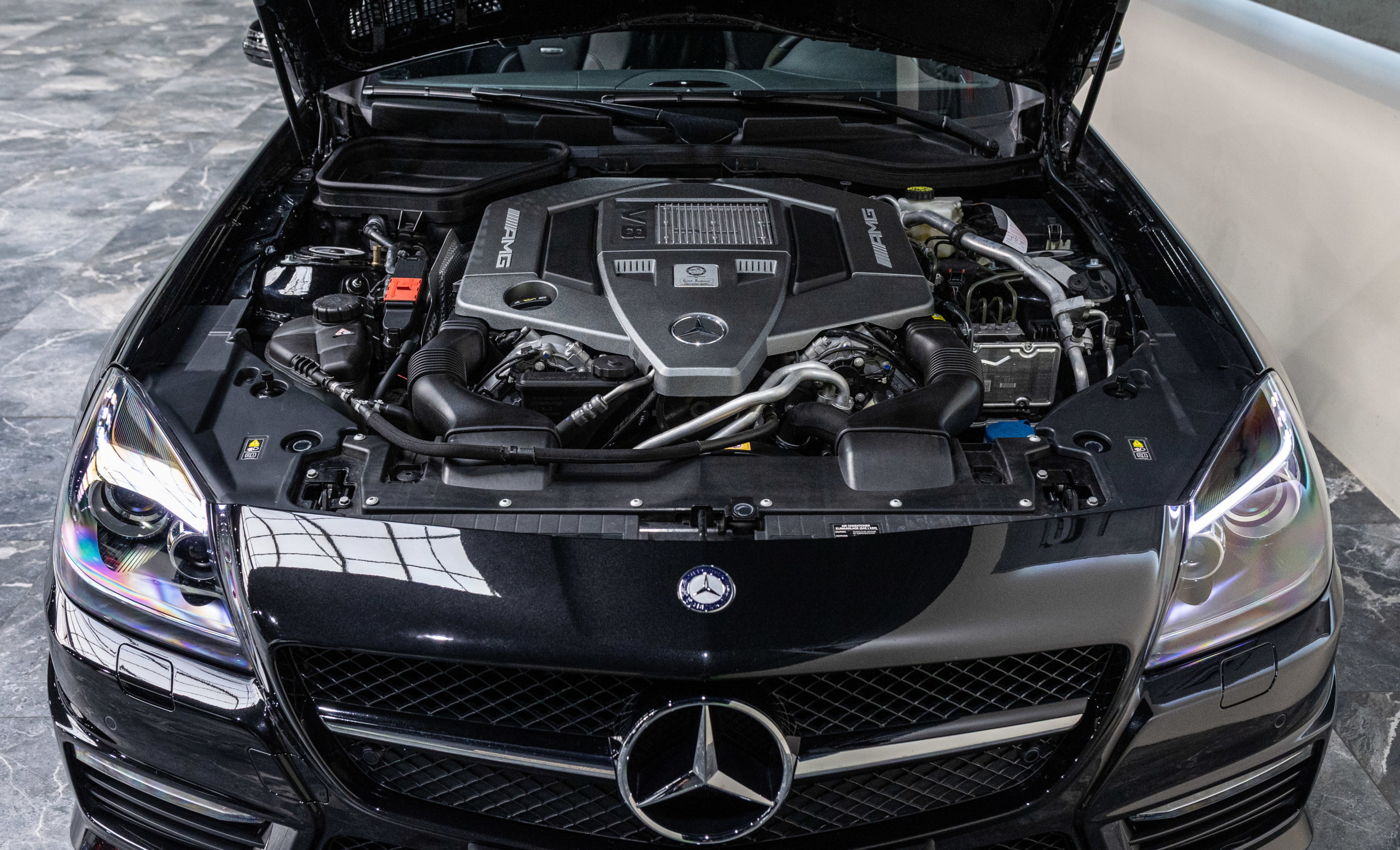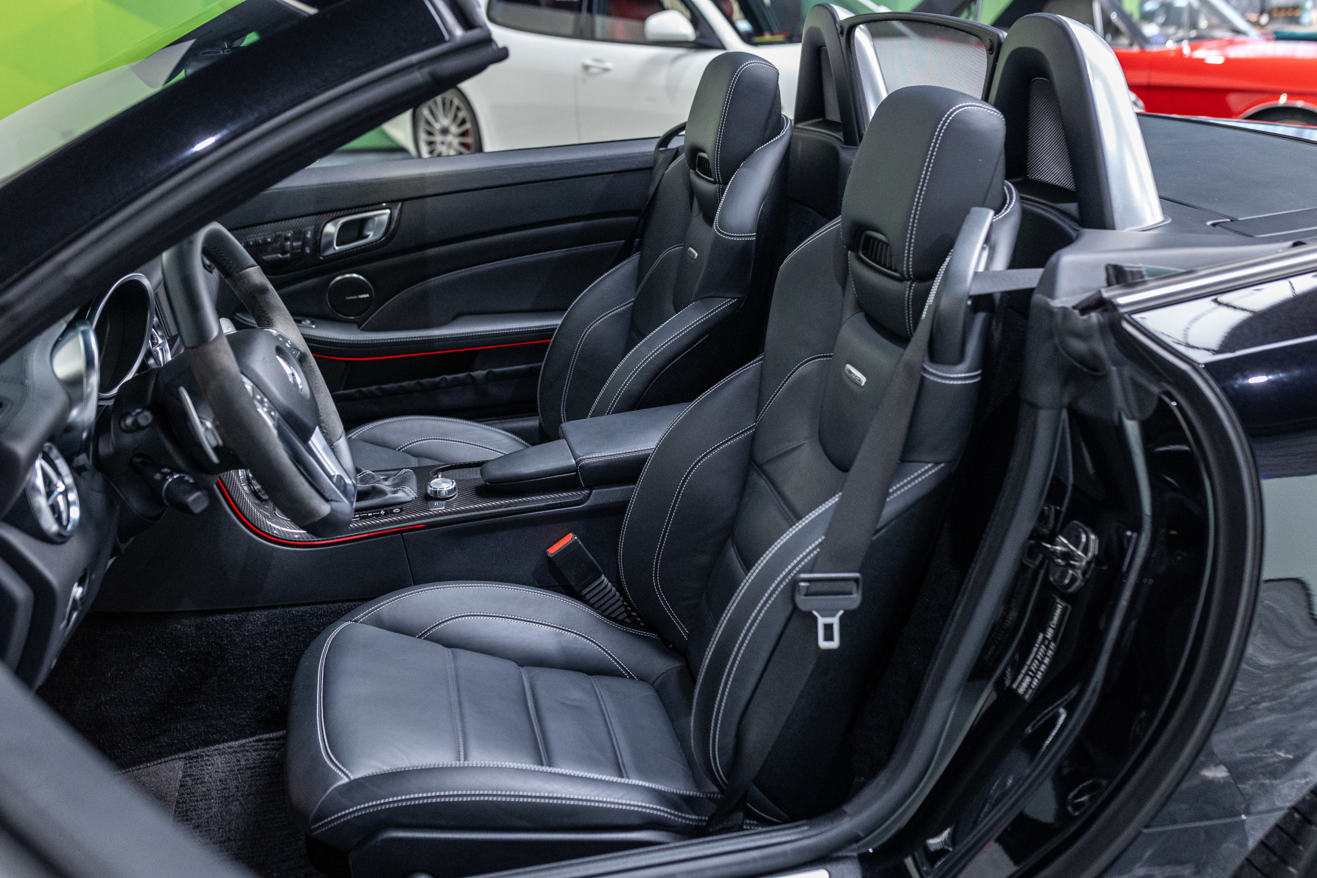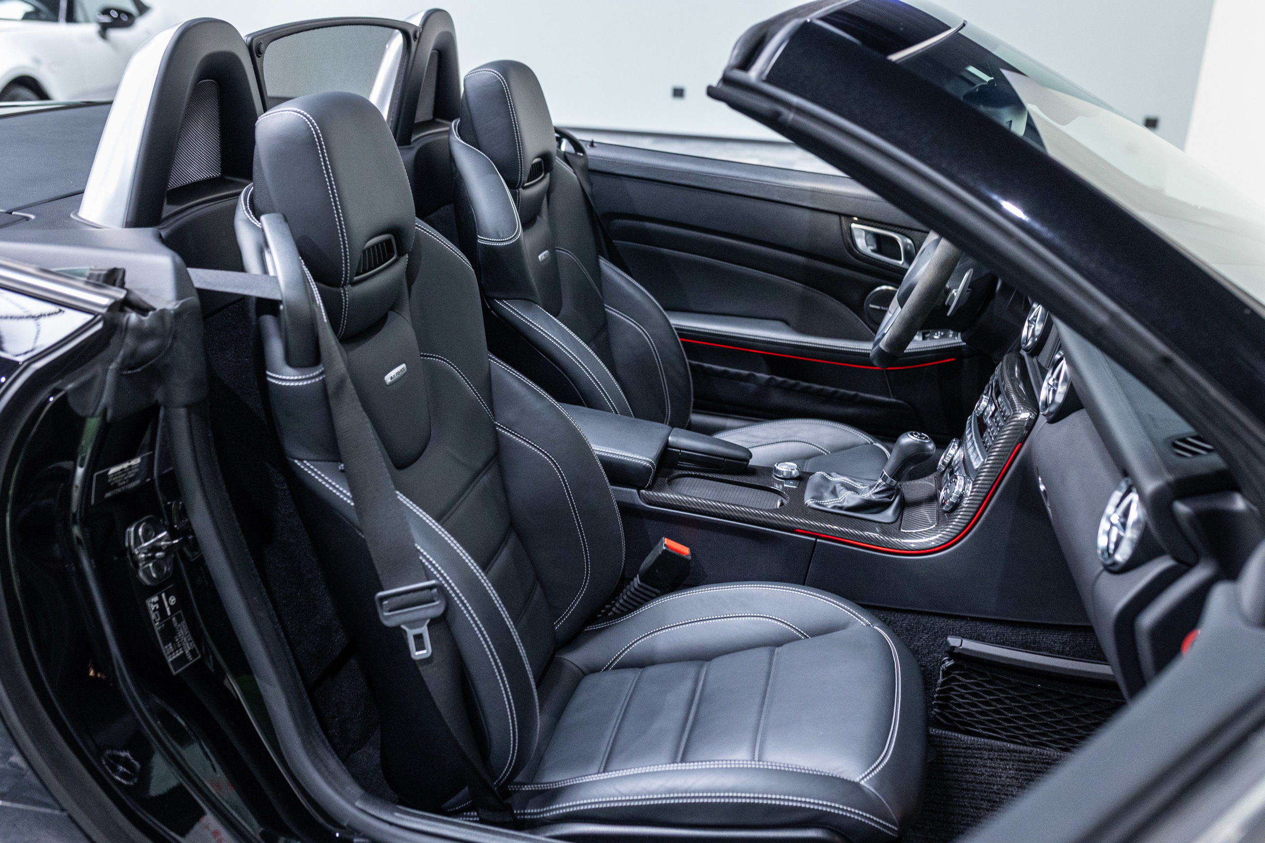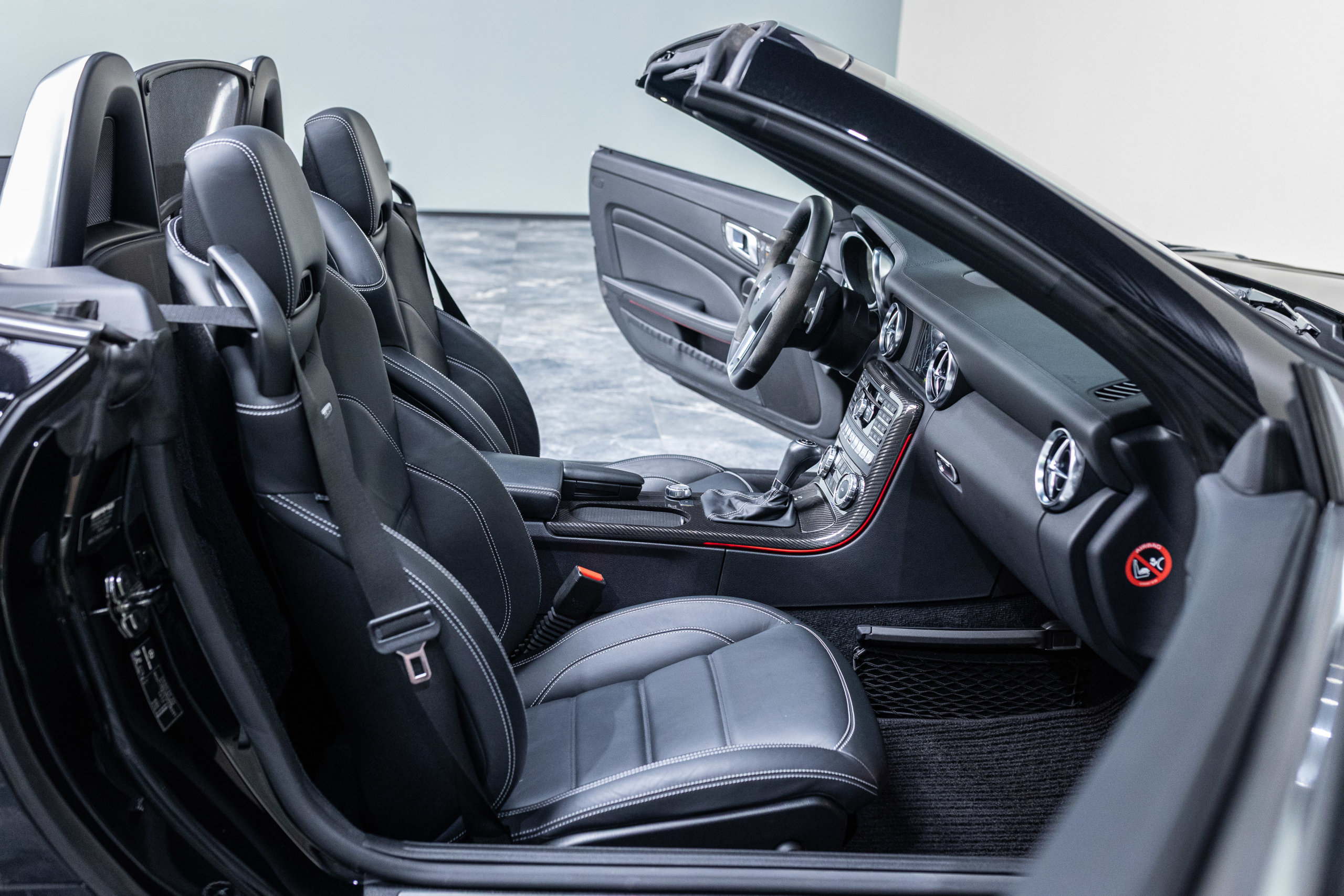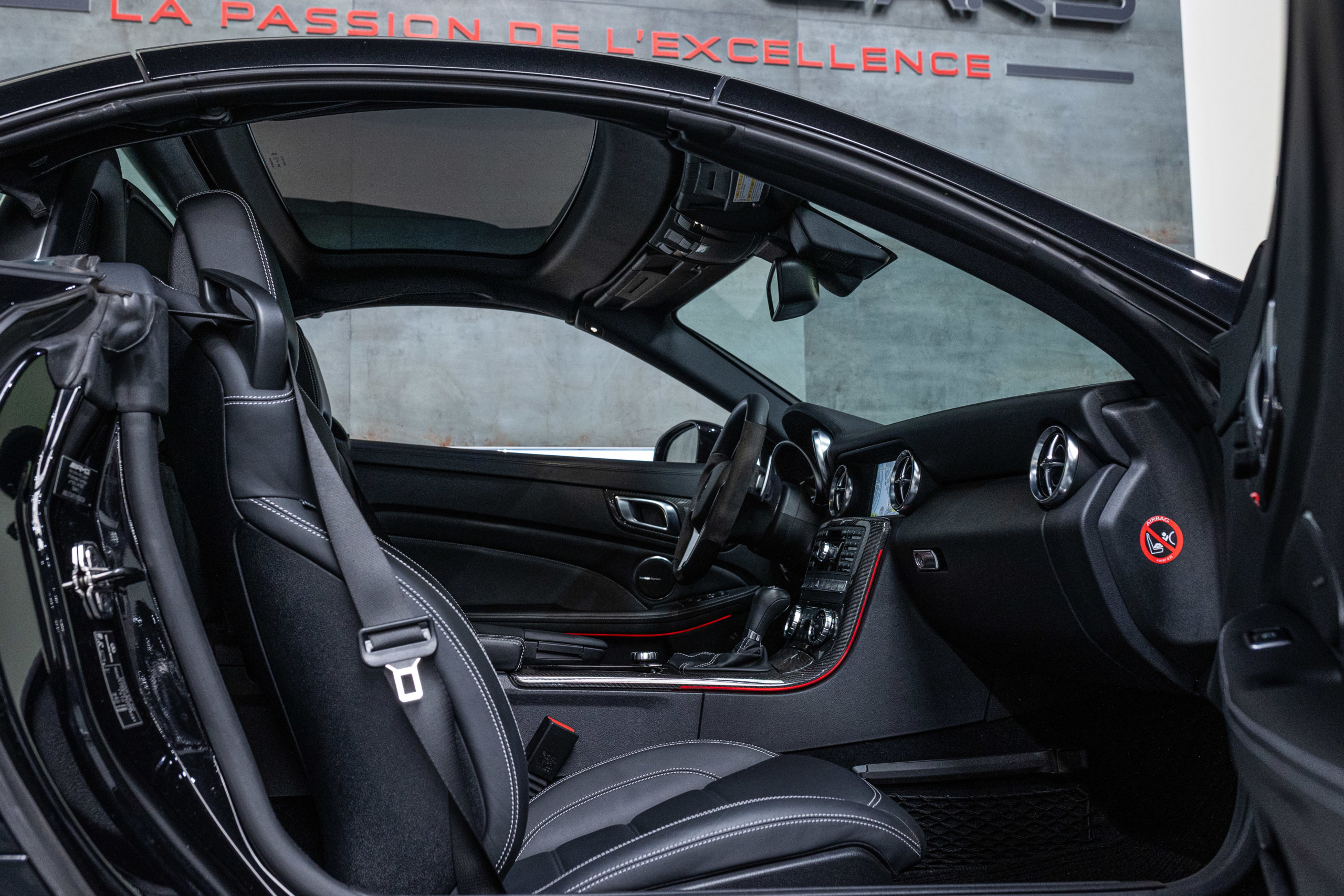 EXTEN’Z CARS vous propose cette magnifique et rare Mercedes-Benz SLK 55 AMG Roadster (R172) avec son fantastique V8 atmosphérique de 5,5 litres en voie de disparition et associé d’une sonorité exceptionnelle ainsi que de sa boîte de vitesses Automatique 7G-Tronic Speedshift Plus développant 420 CV (31cv), mise en circulation le 30/04/2012, de couleur Noir Obsidienne Métallisée. Une gueule, un moteur et un châssis, d’une polyvalence rare, ce roadster SLK 55 AMG R172 fait honneur au blason Mercedes ! Plus GT que supersportive, le SLK AMG n’en demeure pas moins époustouflant en performances et ultra agréable en conduite coulée.
