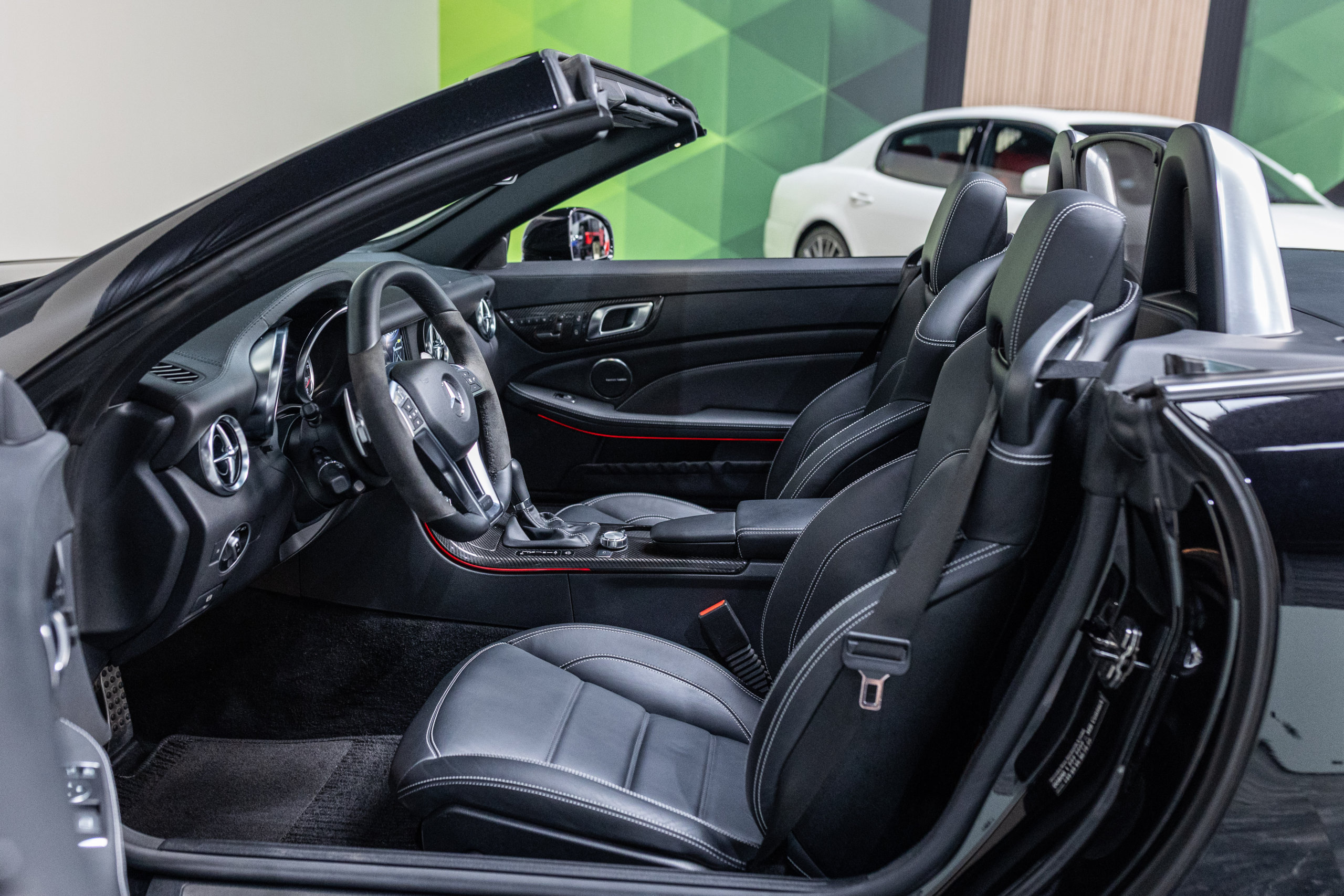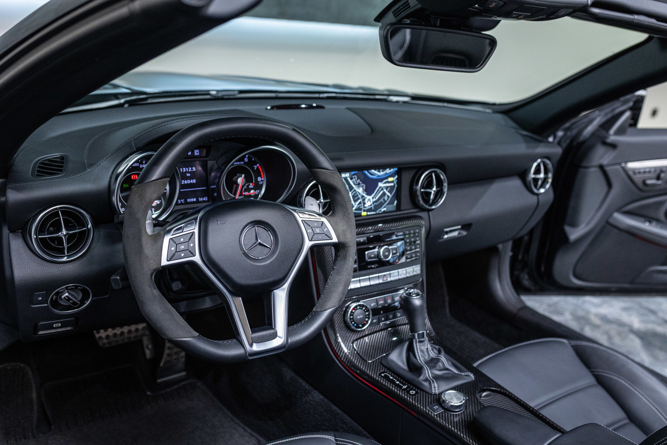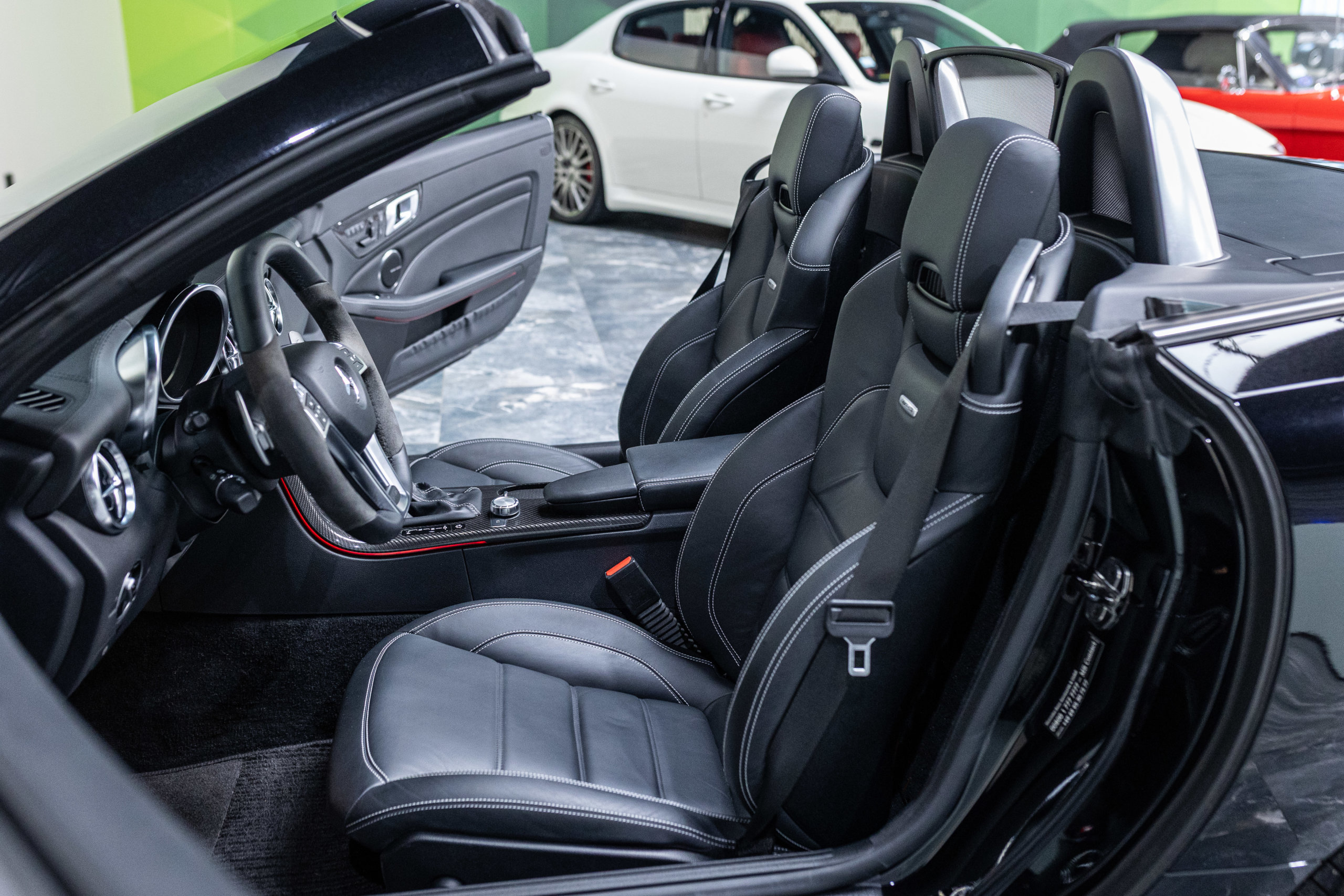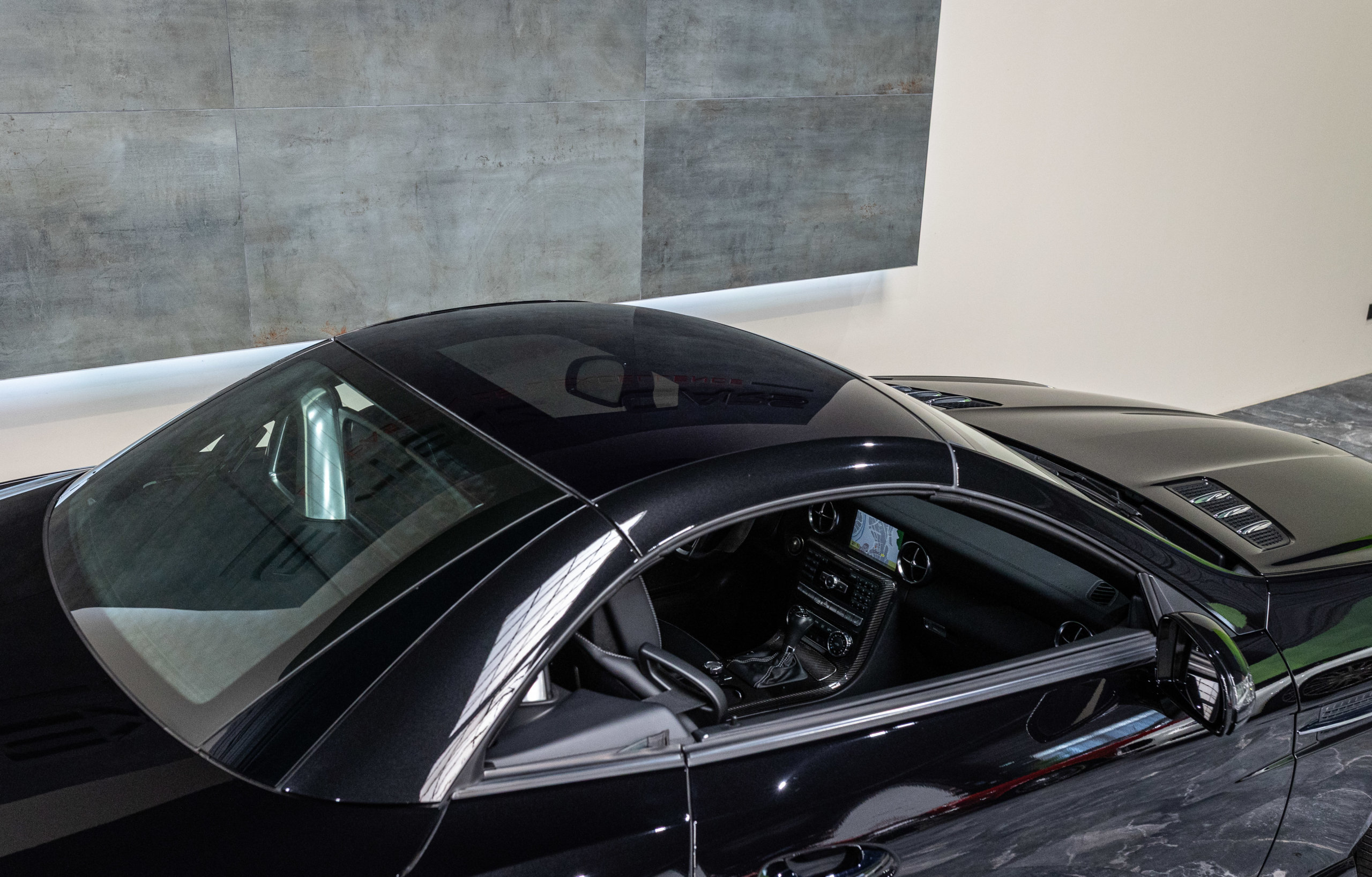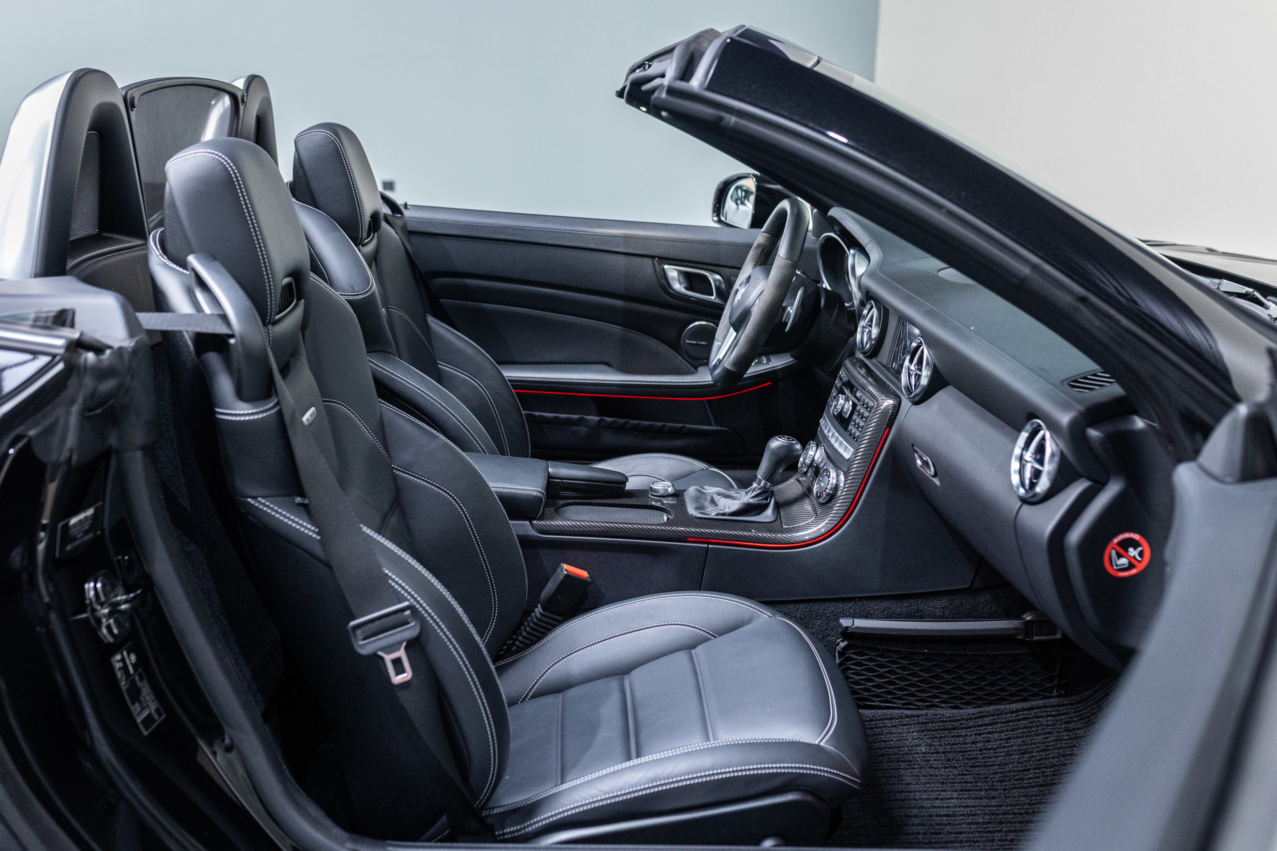 EXTEN’Z CARS vous propose cette magnifique et rare Mercedes-Benz SLK 55 AMG Roadster (R172) avec son fantastique V8 atmosphérique de 5,5 litres en voie de disparition et associé d’une sonorité exceptionnelle ainsi que de sa boîte de vitesses Automatique 7G-Tronic Speedshift Plus développant 420 CV (31cv), mise en circulation le 30/04/2012, de couleur Noir Obsidienne Métallisée. Une gueule, un moteur et un châssis, d’une polyvalence rare, ce roadster SLK 55 AMG R172 fait honneur au blason Mercedes ! Plus GT que supersportive, le SLK AMG n’en demeure pas moins époustouflant en performances et ultra agréable en conduite coulée.