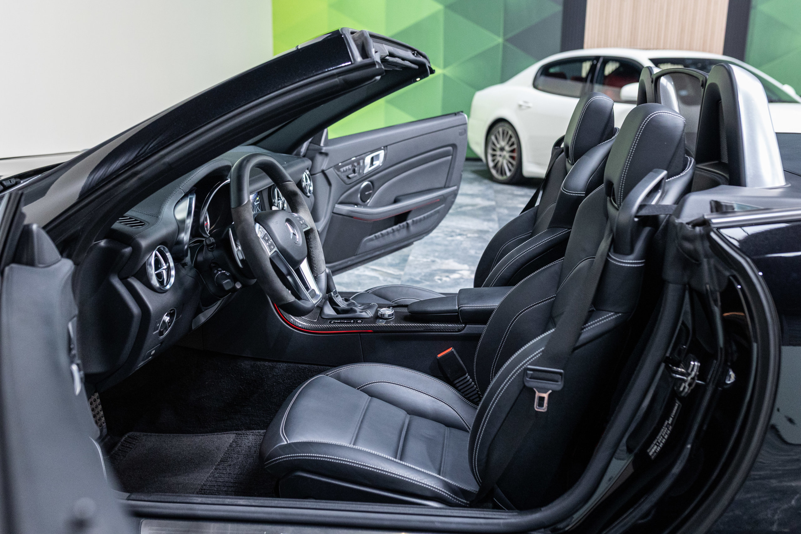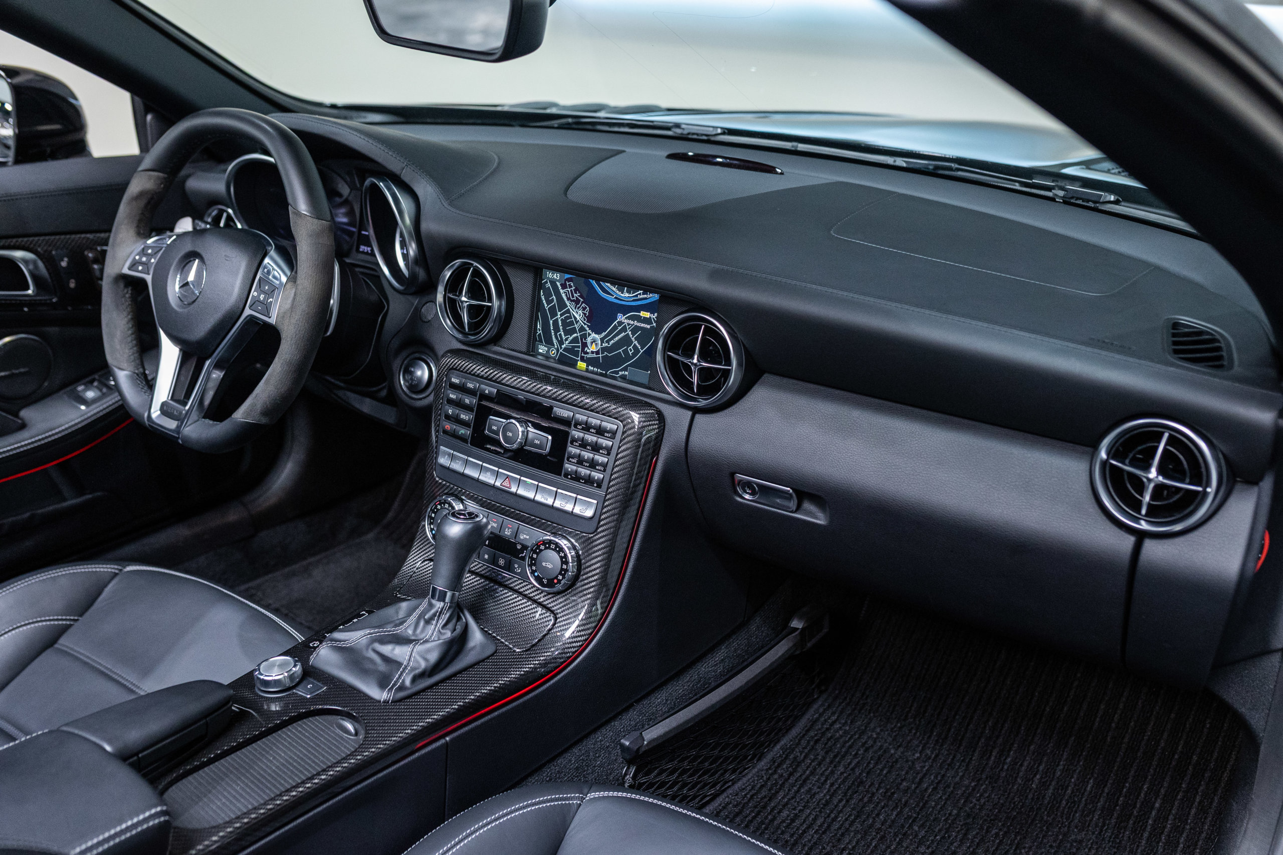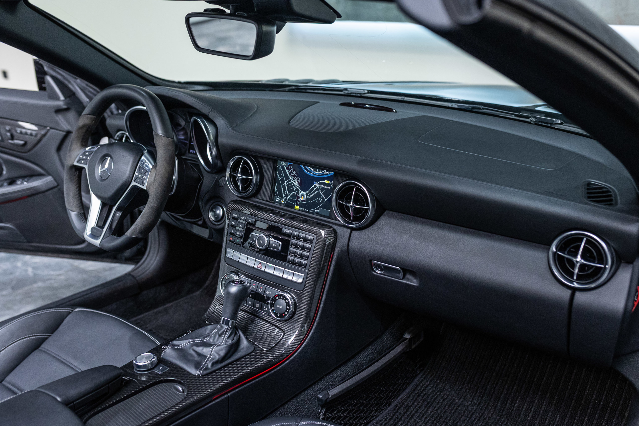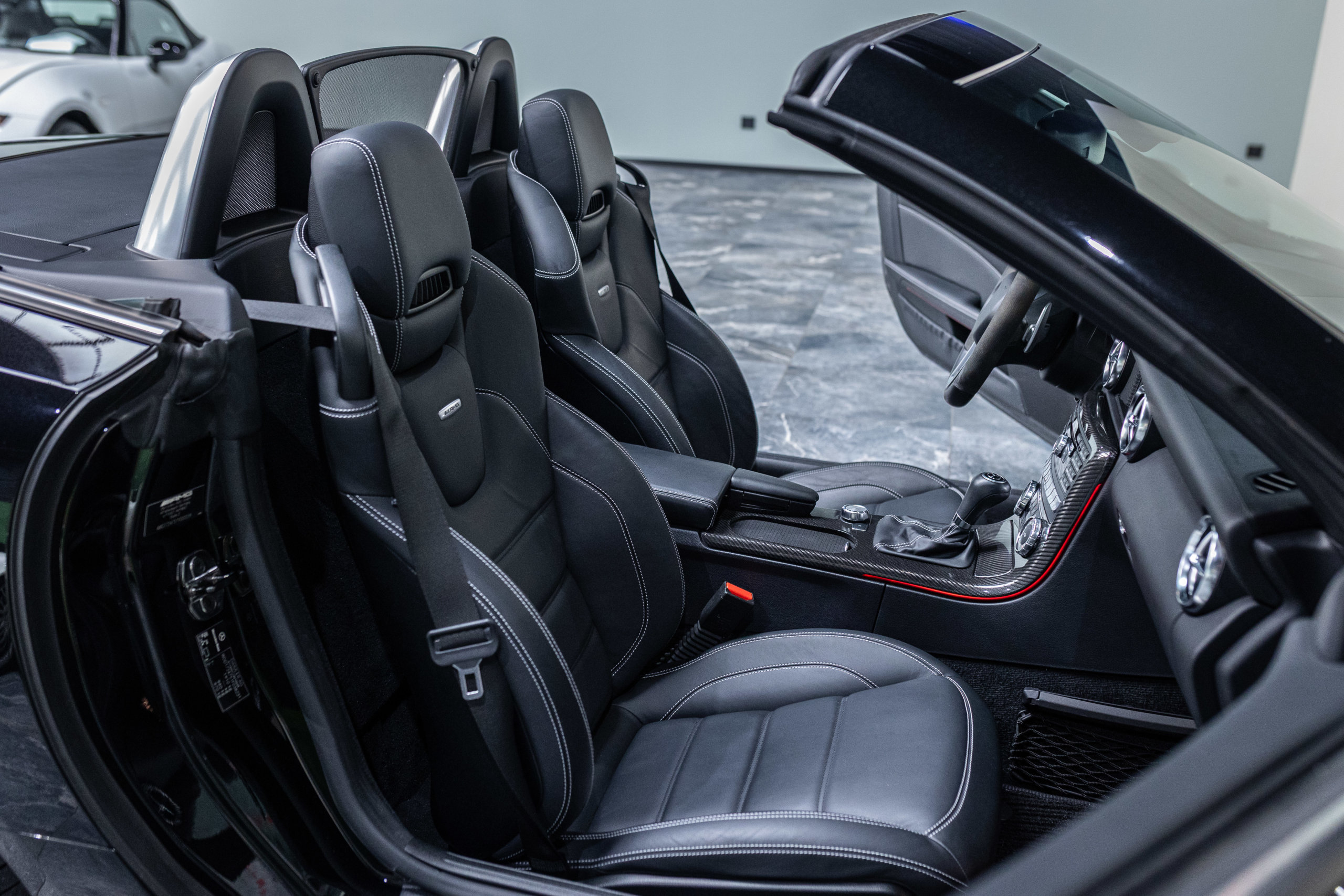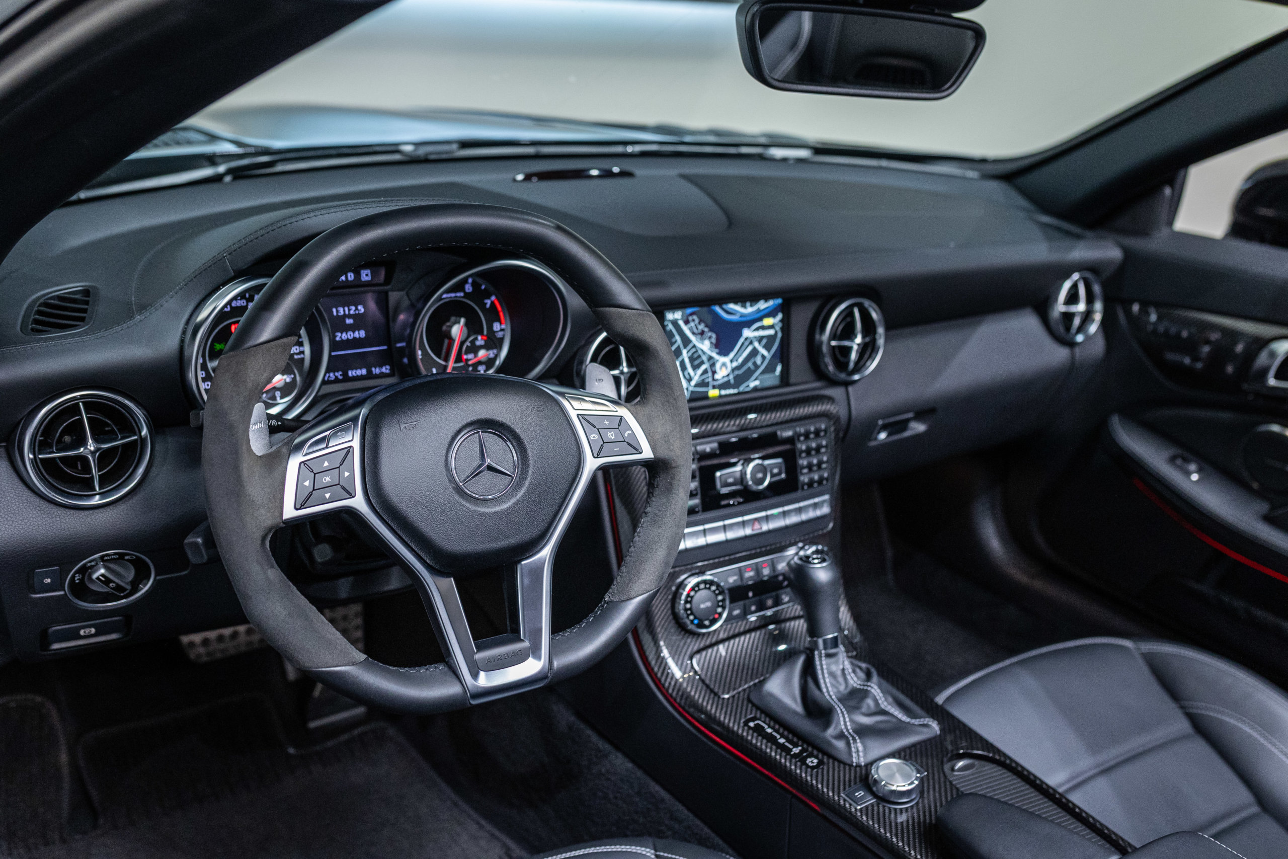 EXTEN’Z CARS vous propose cette magnifique et rare Mercedes-Benz SLK 55 AMG Roadster (R172) avec son fantastique V8 atmosphérique de 5,5 litres en voie de disparition et associé d’une sonorité exceptionnelle ainsi que de sa boîte de vitesses Automatique 7G-Tronic Speedshift Plus développant 420 CV (31cv), mise en circulation le 30/04/2012, de couleur Noir Obsidienne Métallisée. Une gueule, un moteur et un châssis, d’une polyvalence rare, ce roadster SLK 55 AMG R172 fait honneur au blason Mercedes ! Plus GT que supersportive, le SLK AMG n’en demeure pas moins époustouflant en performances et ultra agréable en conduite coulée.