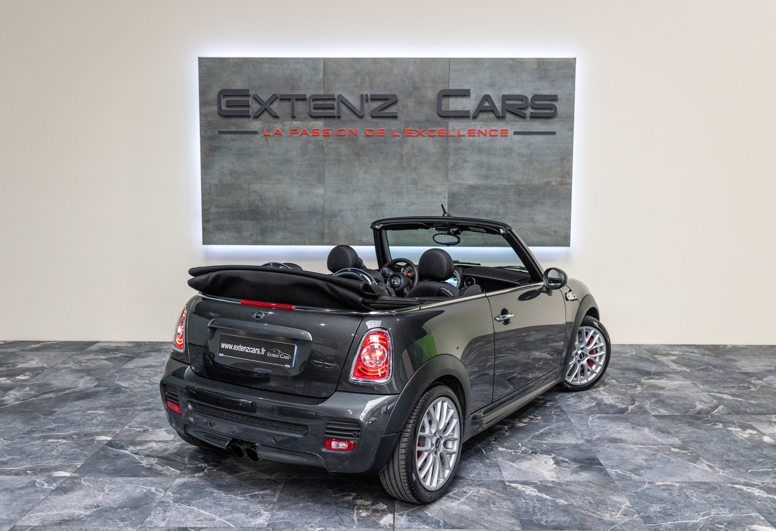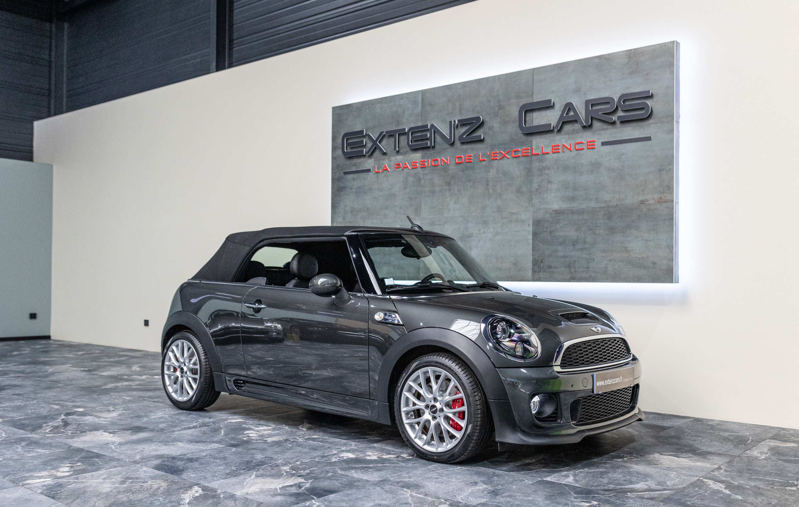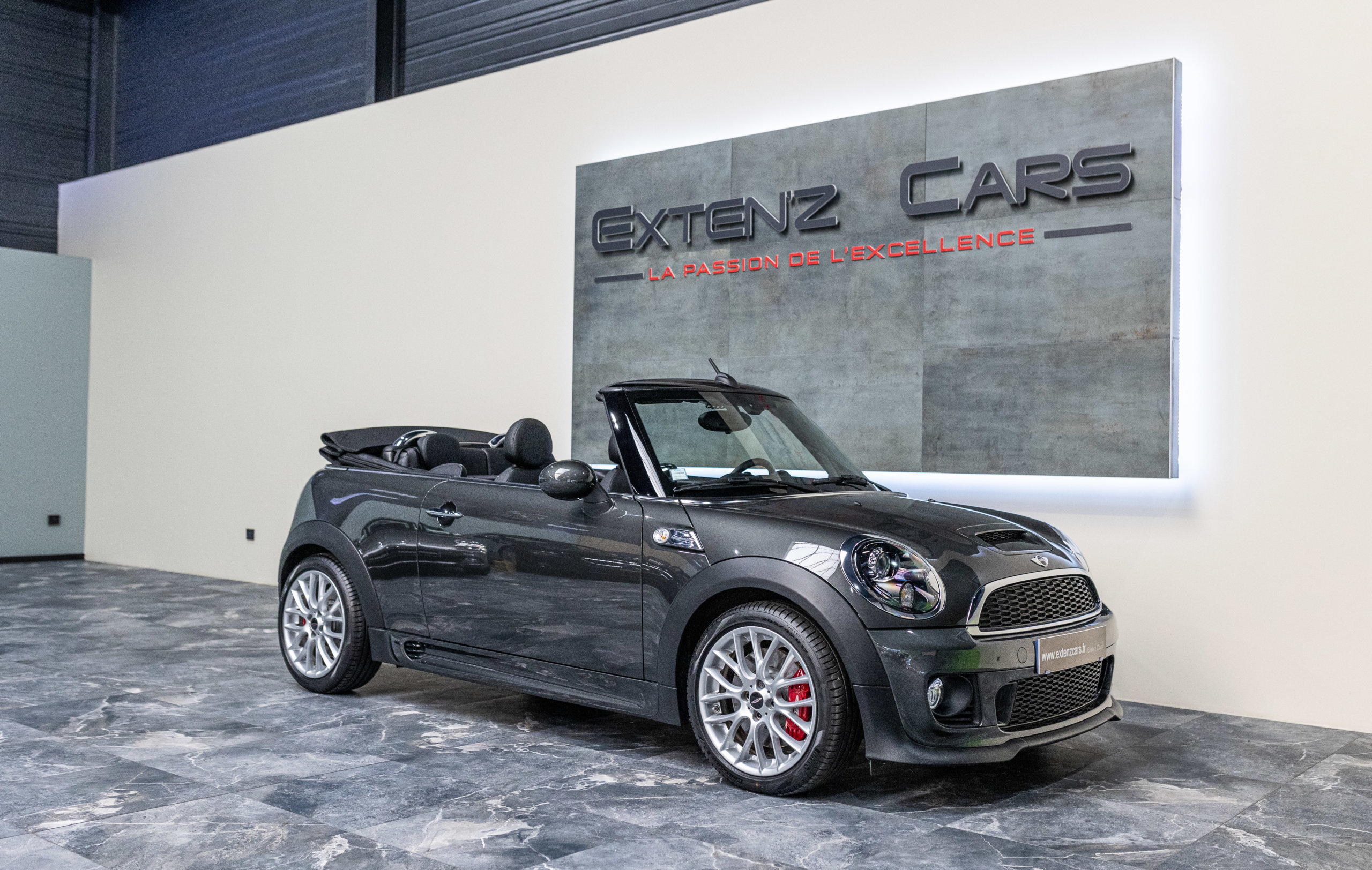 EXTEN’Z CARS vous propose cette splendide Mini Cabriolet R57 1.6 211 CV. John Cooper Works, une véritable icône de l’automobile alliant tradition et modernité. Mise en circulation le 21/05/2015, cette Mini arbore une élégante couleur Éclipse Grey Métallisée, renforçant son caractère intemporel et son allure distinctive. L’habitacle de cette Mini JCW est un mélange parfait de style et de confort, avec des sièges sport en cuir, un volant multifonction et des finitions en piano black. Le système audio premium, la connectivité Bluetooth et la navigation intégrée offrent une expérience utilisateur moderne et intuitive. La capote en toile, entièrement automatisée, permet de passer du coupé au cabriolet en quelques secondes apportant une véritable sensation de liberté.
